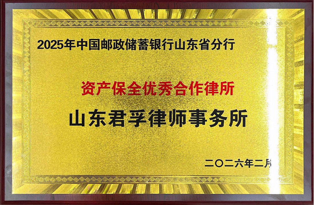 我所荣获2025年中国邮政储蓄银行山东省分行 资产保全优秀合作律所